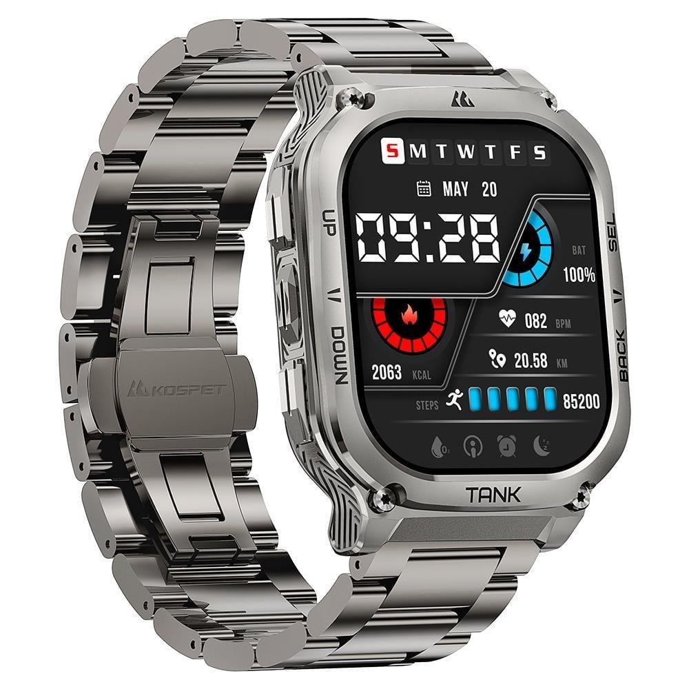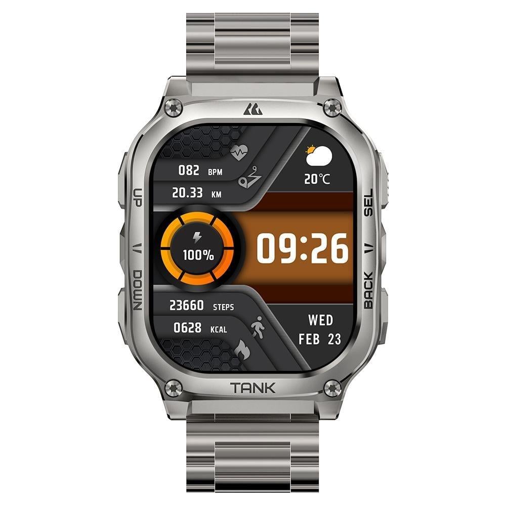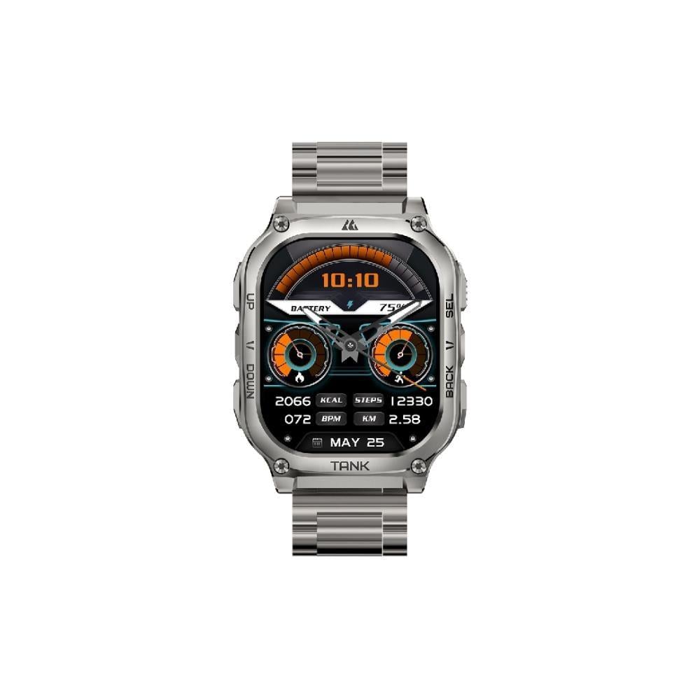 تأتي ساعة Kospet Tank M3 Special Edition (باللون الفضي) بتصميم قوي يلائم عشاق الرياضة والمغامرات، حيث تم تزويدها بمواد متينة لمقاومة الصدمات والعوامل الخارجية. تتميز بشاشة واسعة مقاس 49 ملم تمنحك رؤية واضحة للوقت والإشعارات وبياناتك الصحية والرياضية. تدعم الاتصال عبر البلوتوث لإجراء واستقبال المكالمات، كما تتمتع بمعيار IP69K المقاوم للماء والأتربة، ما يجعلها خيارًا مثاليًا لمختلف الظروف والأنشطة الرياضية.