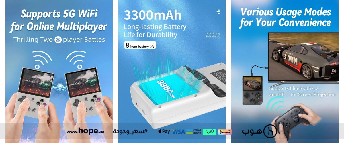 - يدعم إخراج HDMI لربط الجهاز بالتلفاز والاستمتاع بتجربة لعب أكبر.