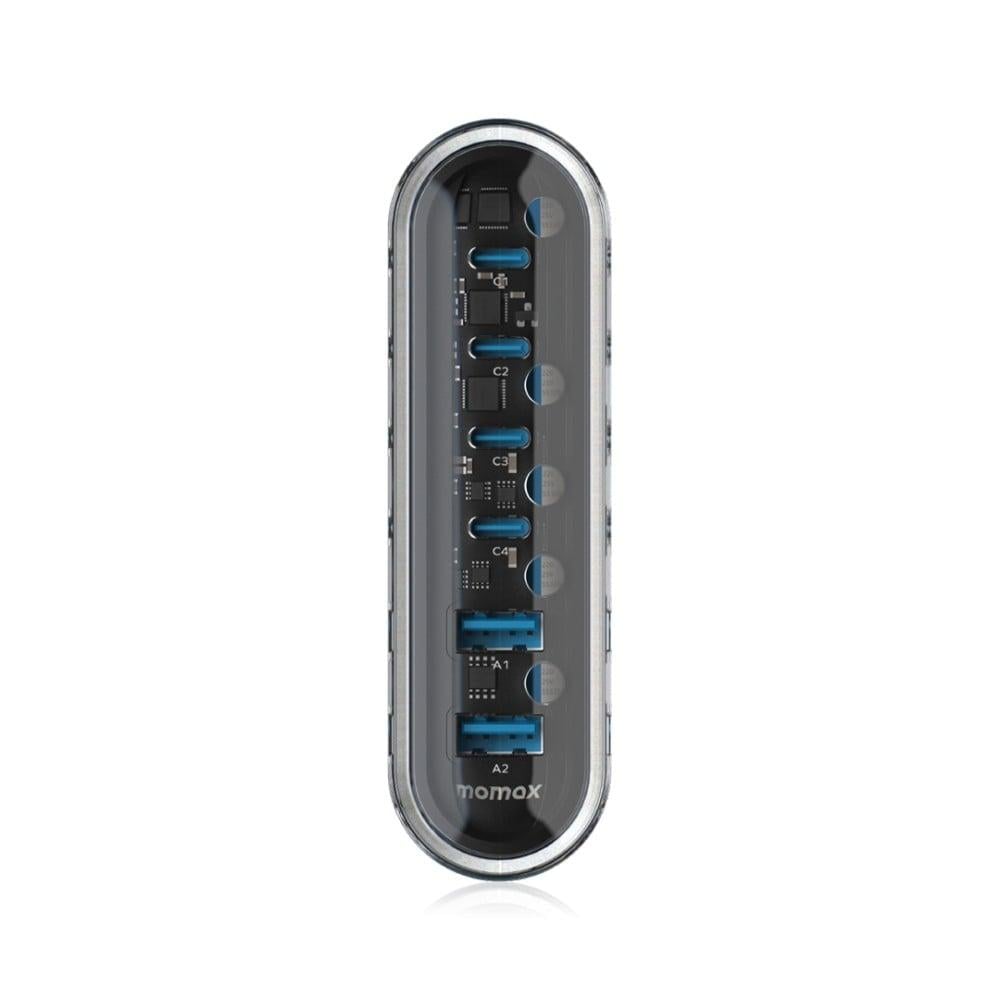 اشحن جميع أجهزتك المحمولة الذكية بنفس الوقت مع شاحن موماكس فلو الذي يمنحك 6 منافذ USB-C و USB-A لشحن جميع الأجهزة بشحن فائق السرعة بقوة 120 واط، مع حامل استانلس ستيل لوضع الشاحن في وضع مستقيم.