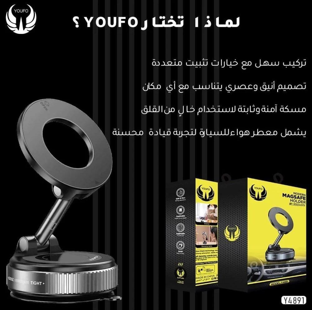 يوفو – حامل جوال للسيارة Y4891 يوفر لك ثبات فائق لجوالك أثناء القيادة مع قاعد تعمل بالشفط لضمان عدم الاهتزاز أو سقوط جوالك في الطرق الوعرة قابل للدوران لتثبيته في الزاوية المثالية لك، مصمم من مواد عالية الجودة تضمن المتانة وعمر أطول
